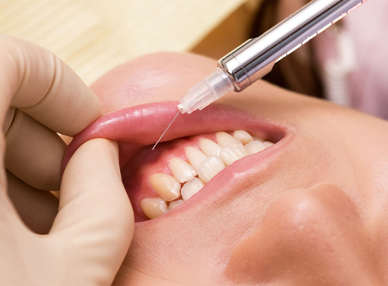 痛みの感じ方は患者さんそれぞれなので、当院では麻酔注射を打つ前に表面麻酔を塗布した後、ゆっくりと麻酔液を注入することで、患者さんの痛みを可能な限り抑える治療を提供しています。